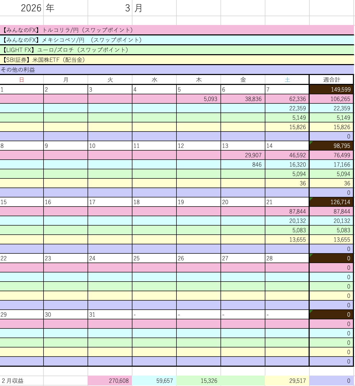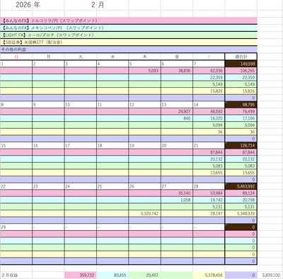 2/22〜2/28までの成績は、プラス5,463,992円でした。 |