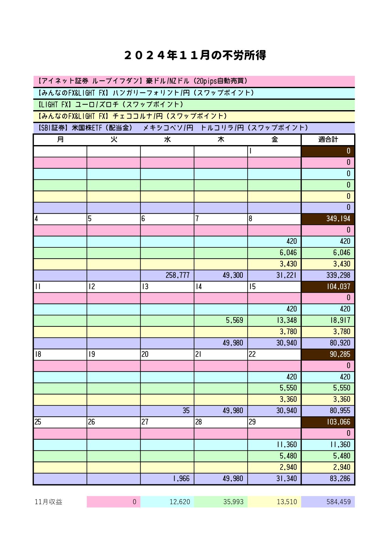 今月はスワップポイントでの利益で72,031円です。