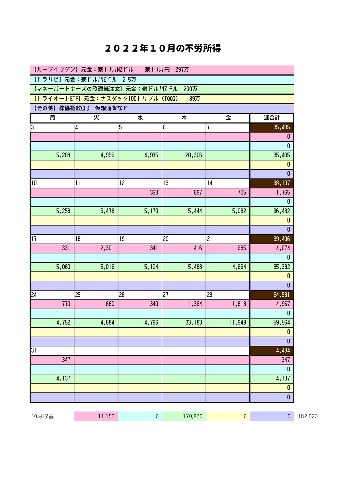 152,779円のスワップポイントと18,091円の裁量トレードでの収益を合わせて170,870円でした。先月と同じ10万越えは嬉しい!