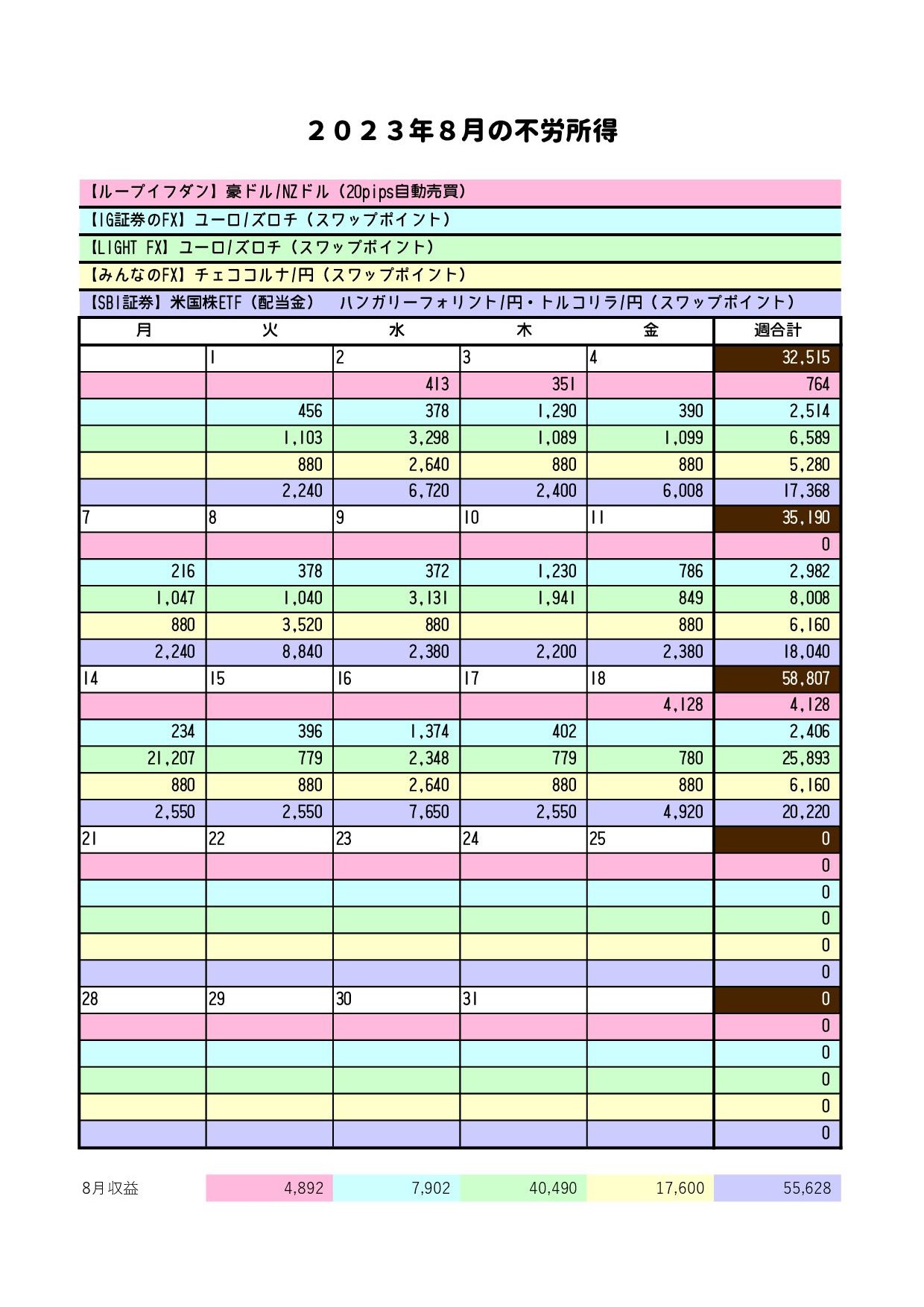 7,092円のスワップポイント(IG証券2,406円,LIGHT FX4,686円)と裁量トレード21,207円の利益です。