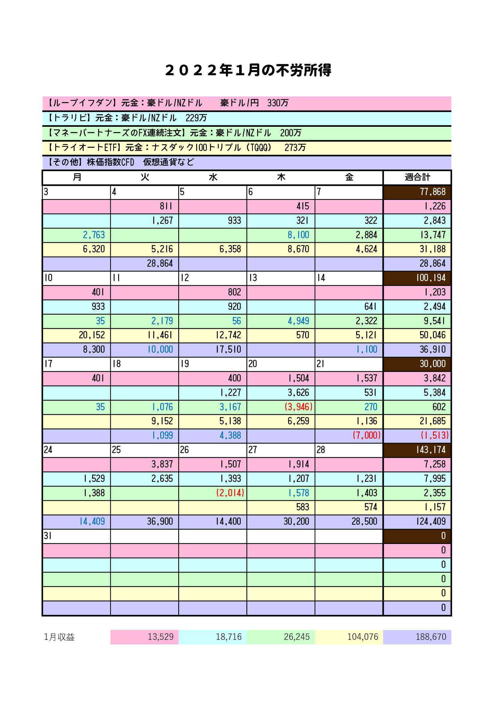 1/24~1/29までの成績は、プラス143,174円でした。 |