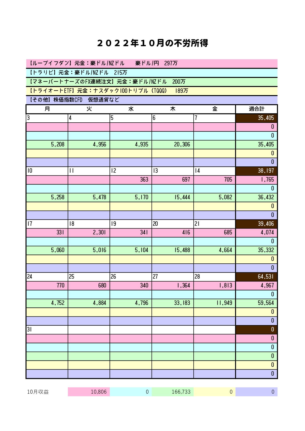 10/24~10/29までの成績は、プラス64,531円でした。 |