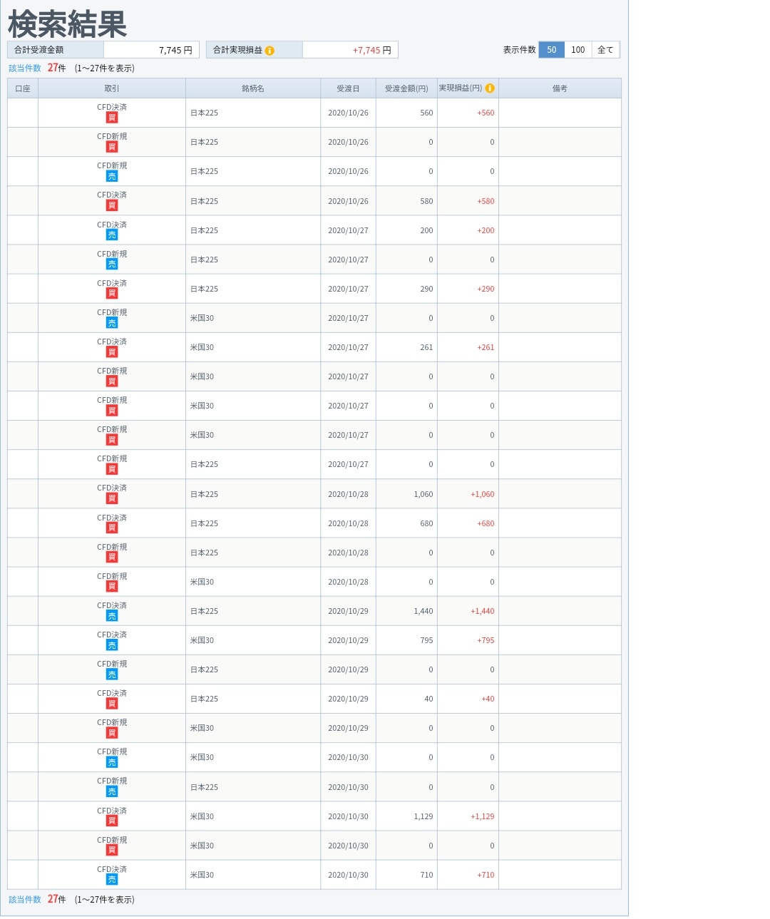 ニューヨークダウは、昨夜売り注文を短期勝負をしたら、1,000円の利益がとれました。それから買いを持ち、1,000円近くになったところで決済しました。それから今朝の4時半ごろに値を上げ、2,000円の機会損失が出ました。そのまま保有していればよかったと思ったのは、タラレバですね。