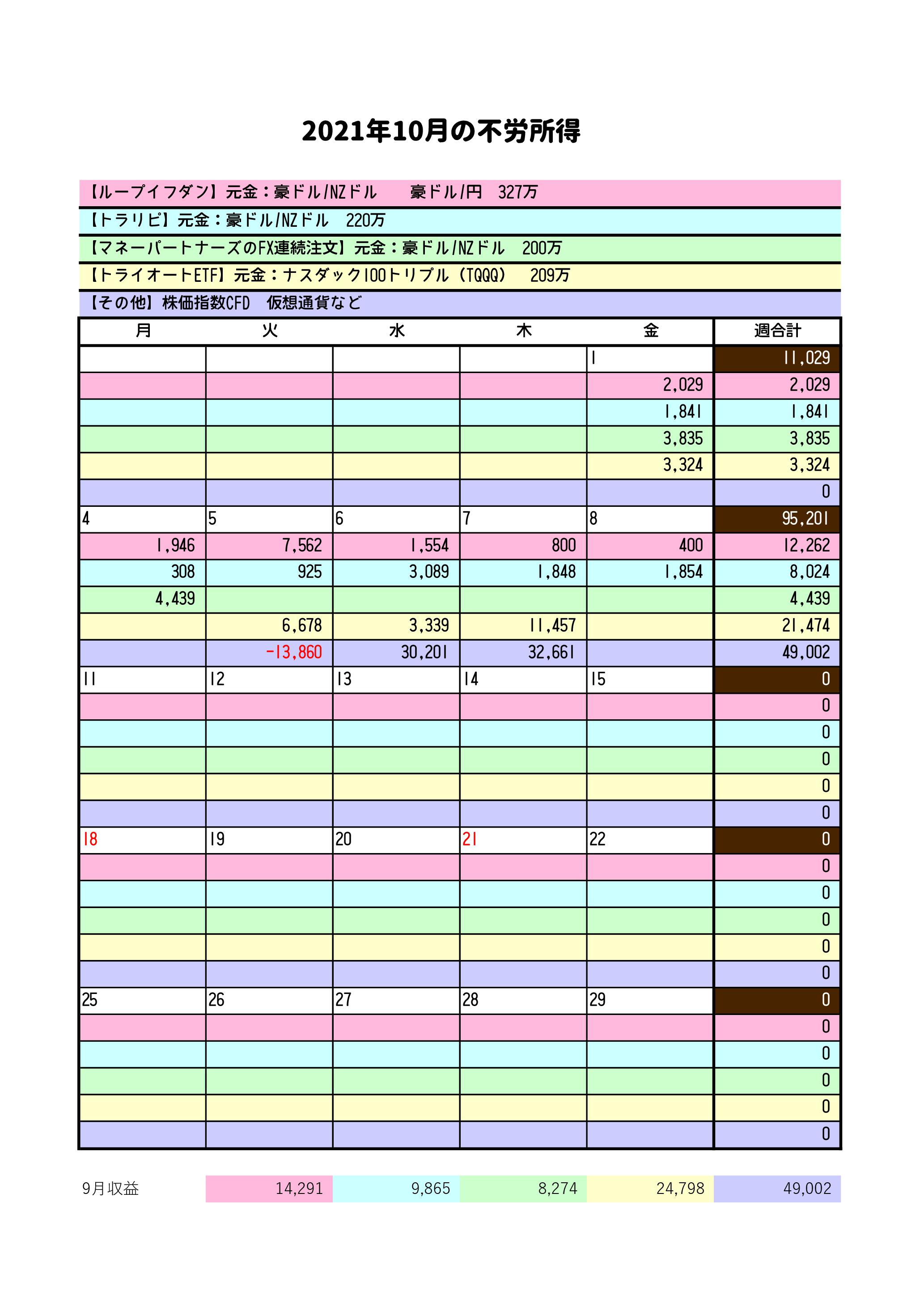 10/4~10/9までの成績は、プラス95,201円でした。 |