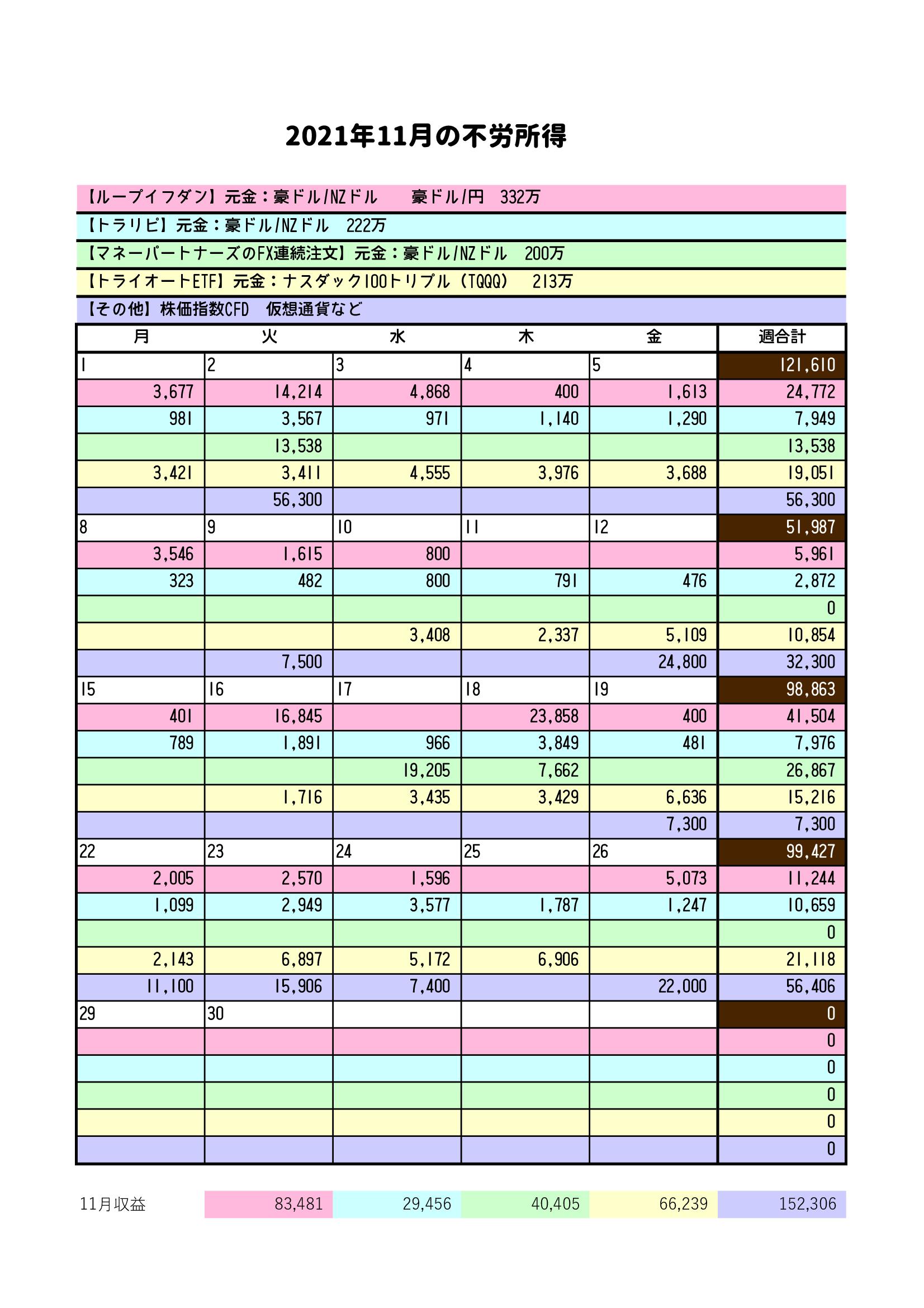 11/22~11/27までの成績は、プラス99,427円でした。 |