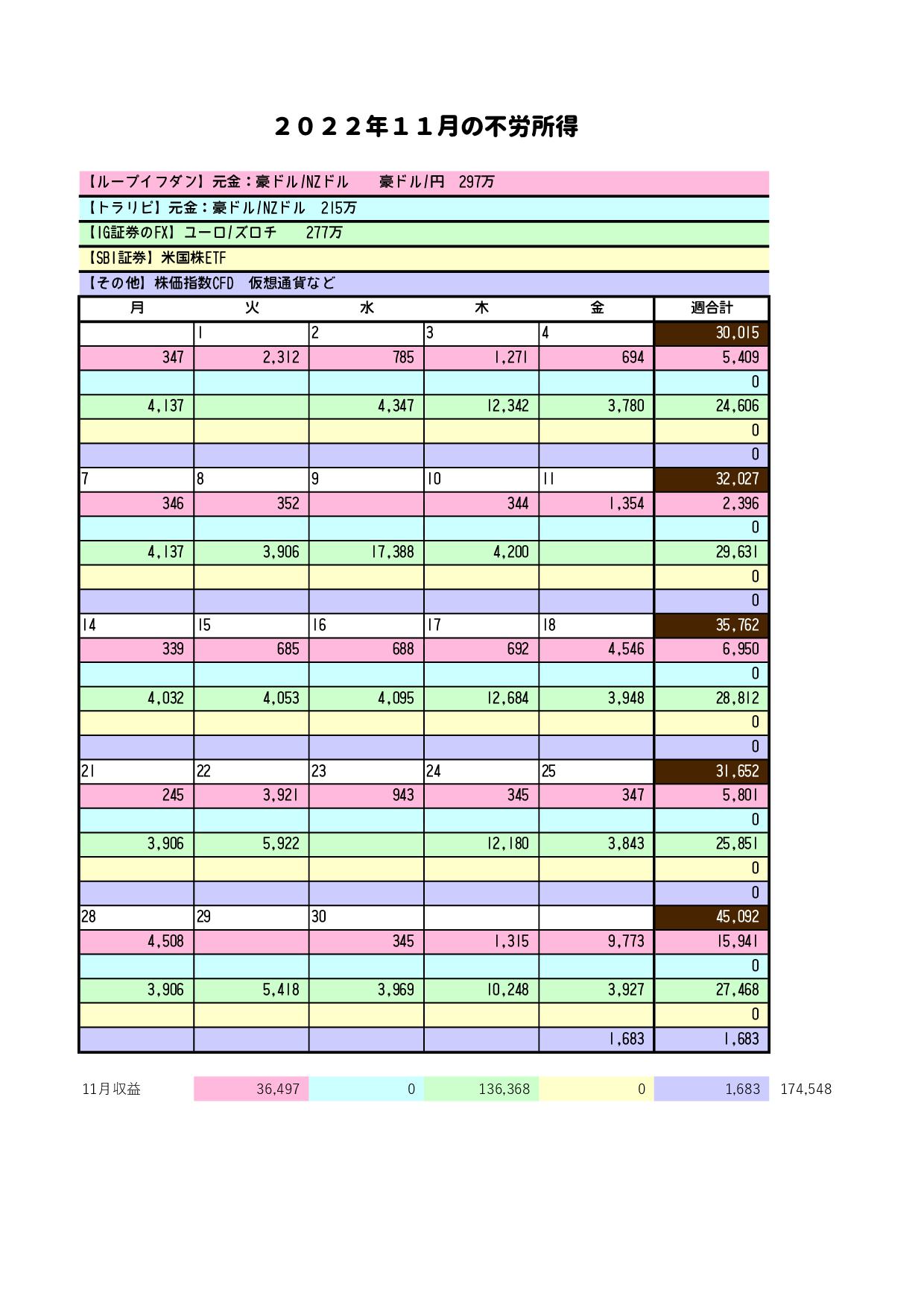 29,151円のスワップポイント(IG証券27,468円,LIGHT FX1,683円)の利益です。