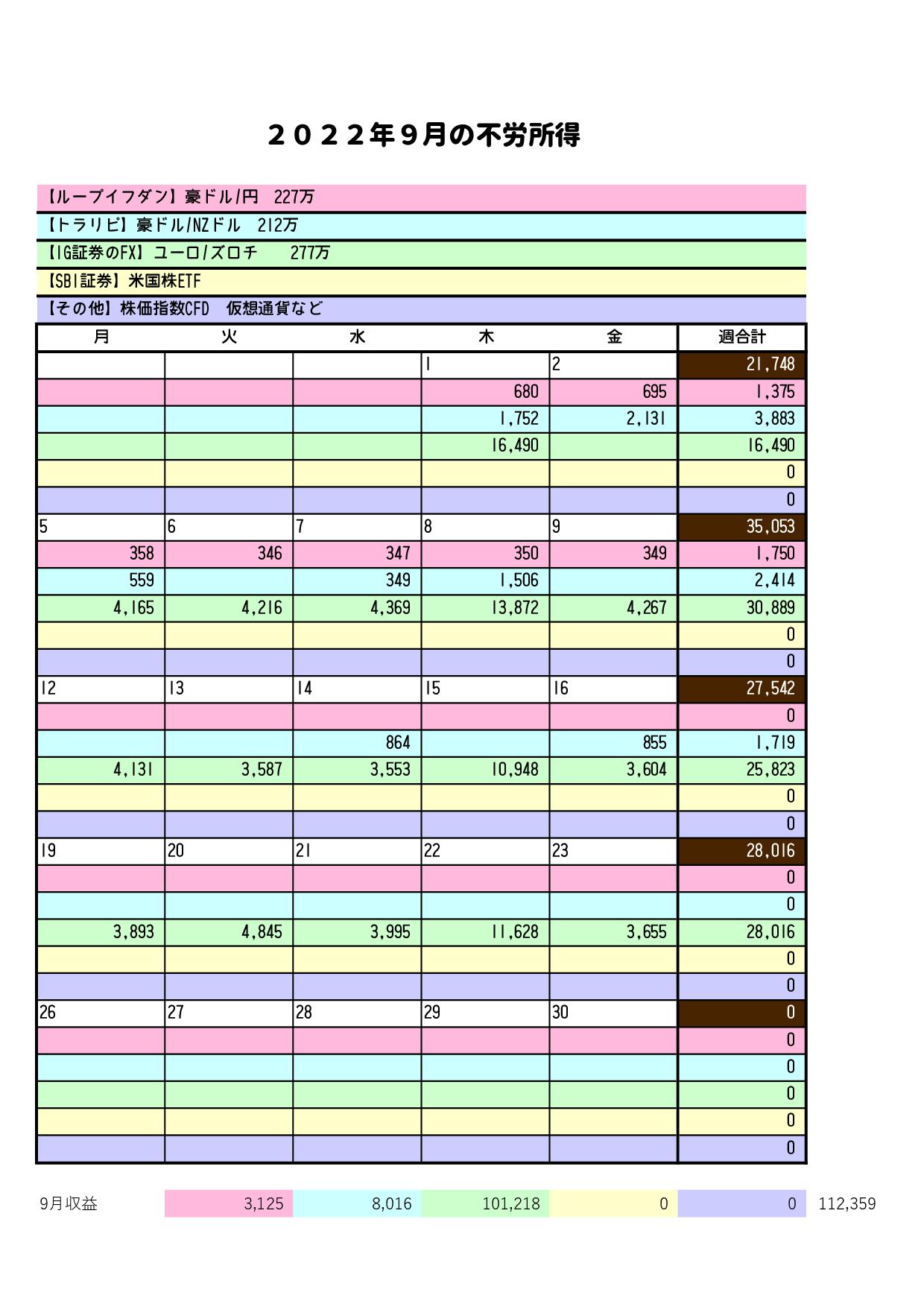 9/26~10/1までの成績は、マイナス1,133,959円でした。 |