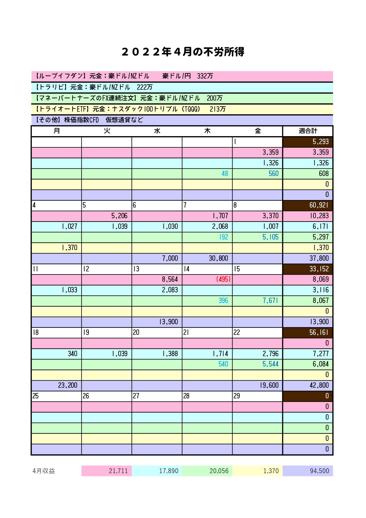 相場が戻ってきたので、含みはなくなりました。現在は4.65辺りで、119,248円の含み益です。また4.80を超えるようだったら、1本追加しようと思います。ようやく1日あたりのボラティリティが小さくなってきました。ズロチの1%利上げが大きく、1万通貨当たりのスワップポイントが160円を超えました。裁量トレードよりも今の相場は、スワップポイントのようにじっと保有して含み益を得る方法の方が、精神的に楽です。長期投資を見据えて分散投資の組み合わせをしっかりと考えていきたいと思います。