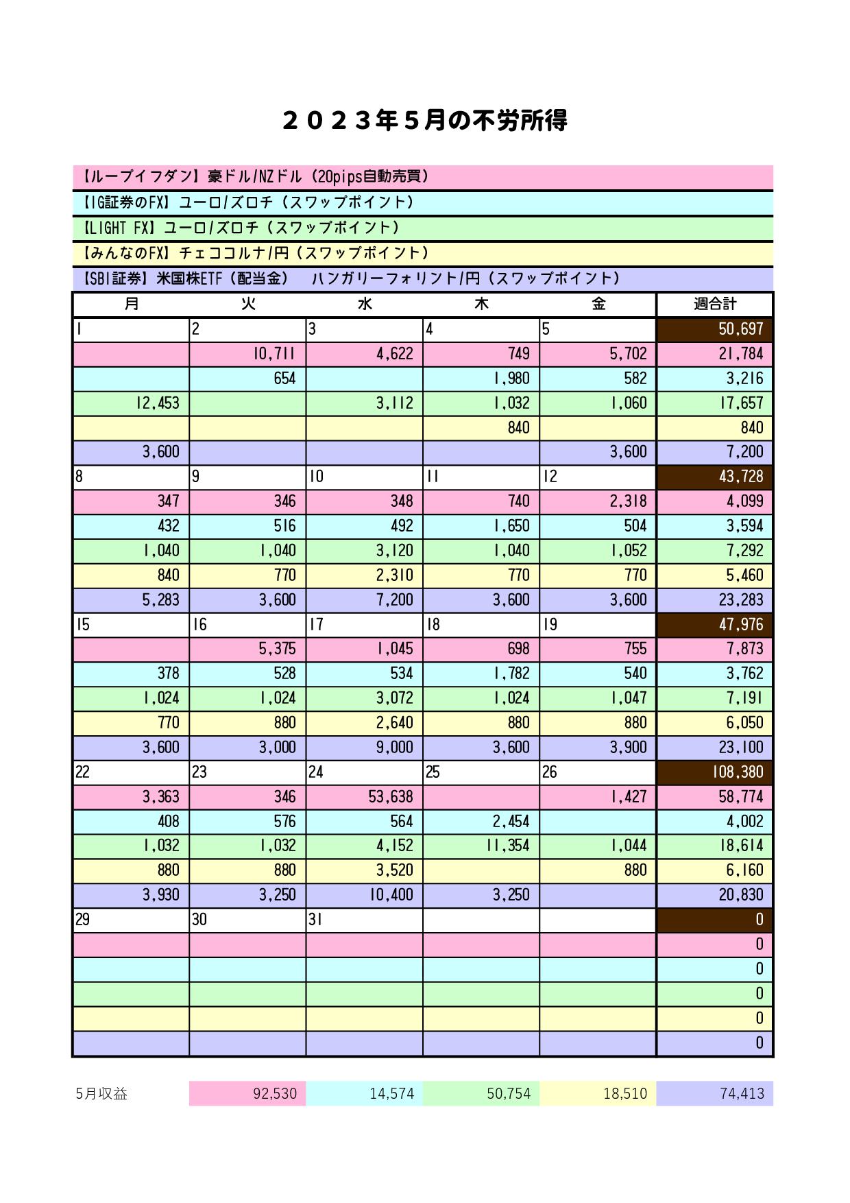5/22~5/27までの成績は、プラス108,380円でした。 |