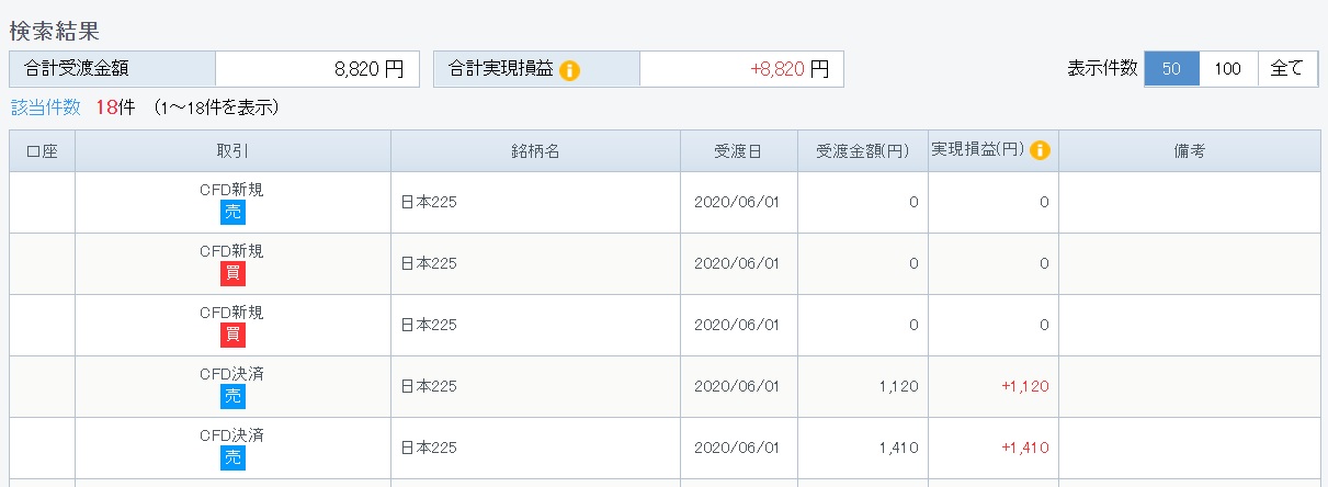 6/1~6/6の利益は8,820円でした。 |