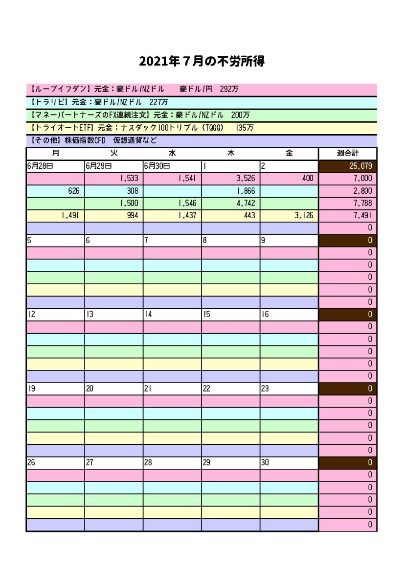 6/28~7/3までの成績は、プラス25,000円でした。 |