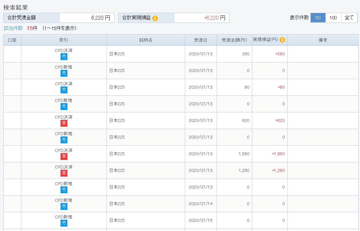 7/13~7/18の利益は6,220円でした。 |