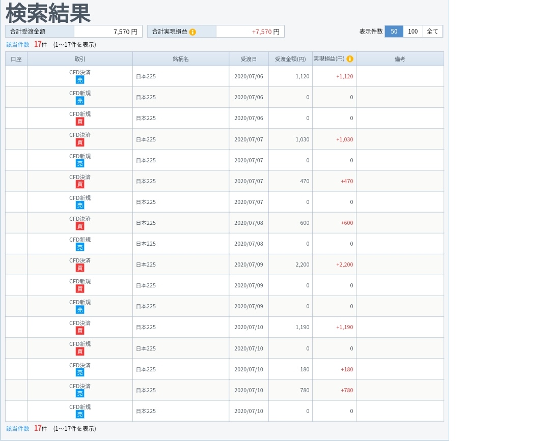 コスモバルクの投資ブログ 7/6~7/11の利益は7,570円でした。