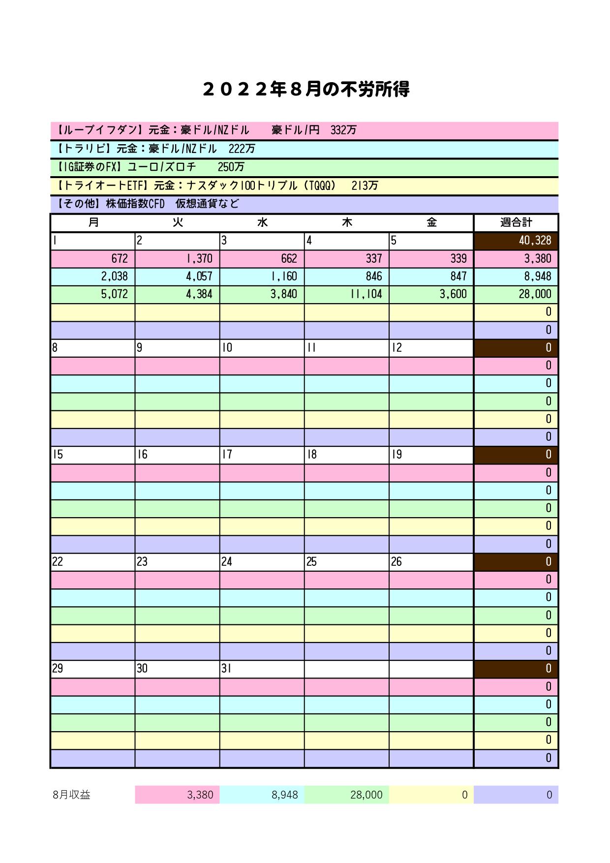 8/1~8/6までの成績は、プラス40,328円でした。 |