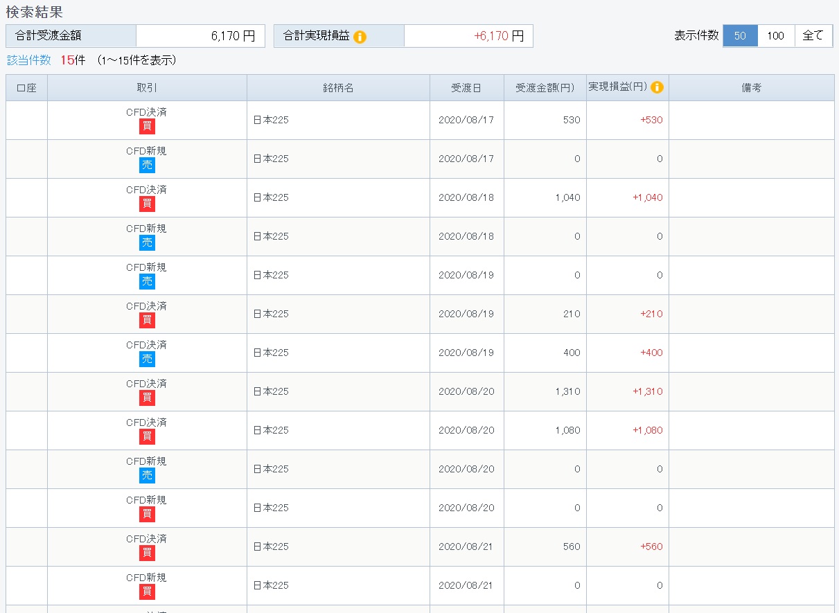8/17~8/22の成績は6,170円でした。