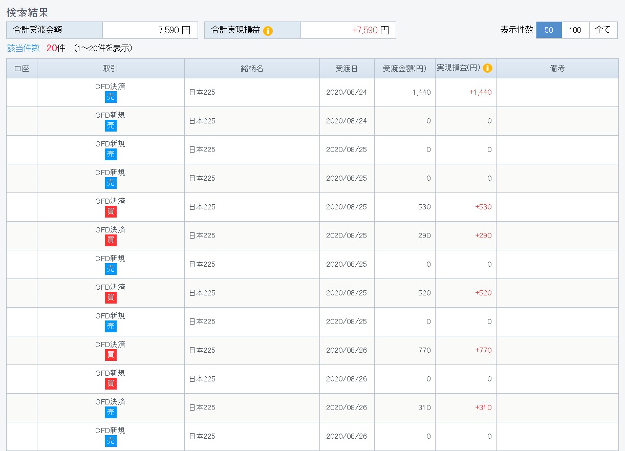 1本は指値で利益確定していたけど、22,700円にしていたので、1,000円しかプラスにならなかった。もっと幅を広くすればよかったと思うのはタラレバ
