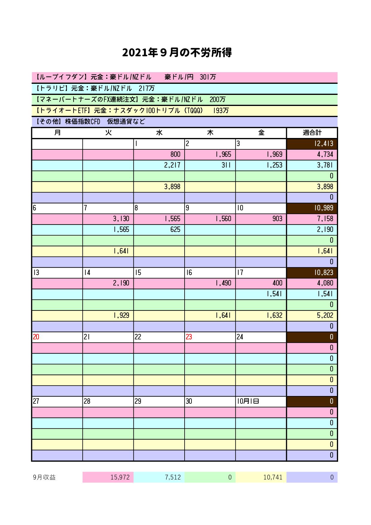 2021/09/18 カテゴリー/今週の成績