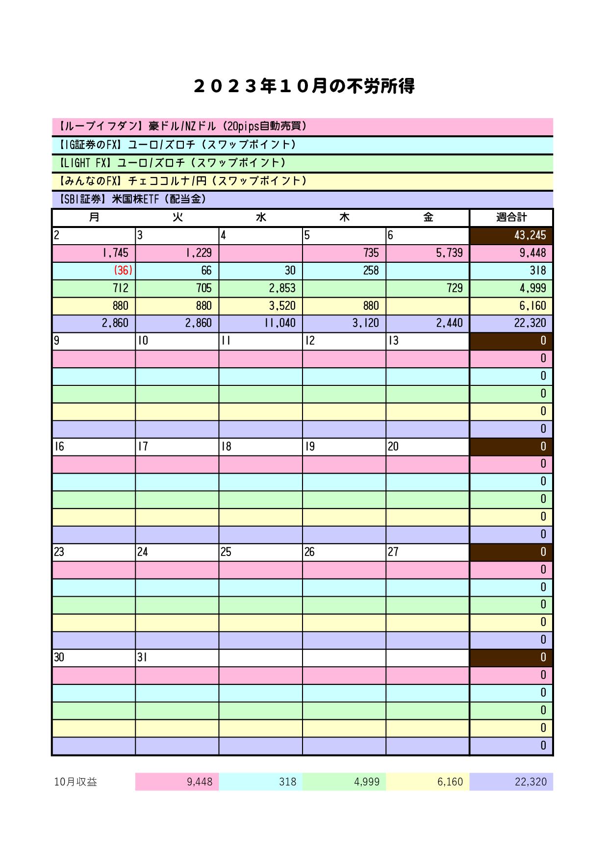 10/2~10/7までの成績は、プラス43,245円でした。 |