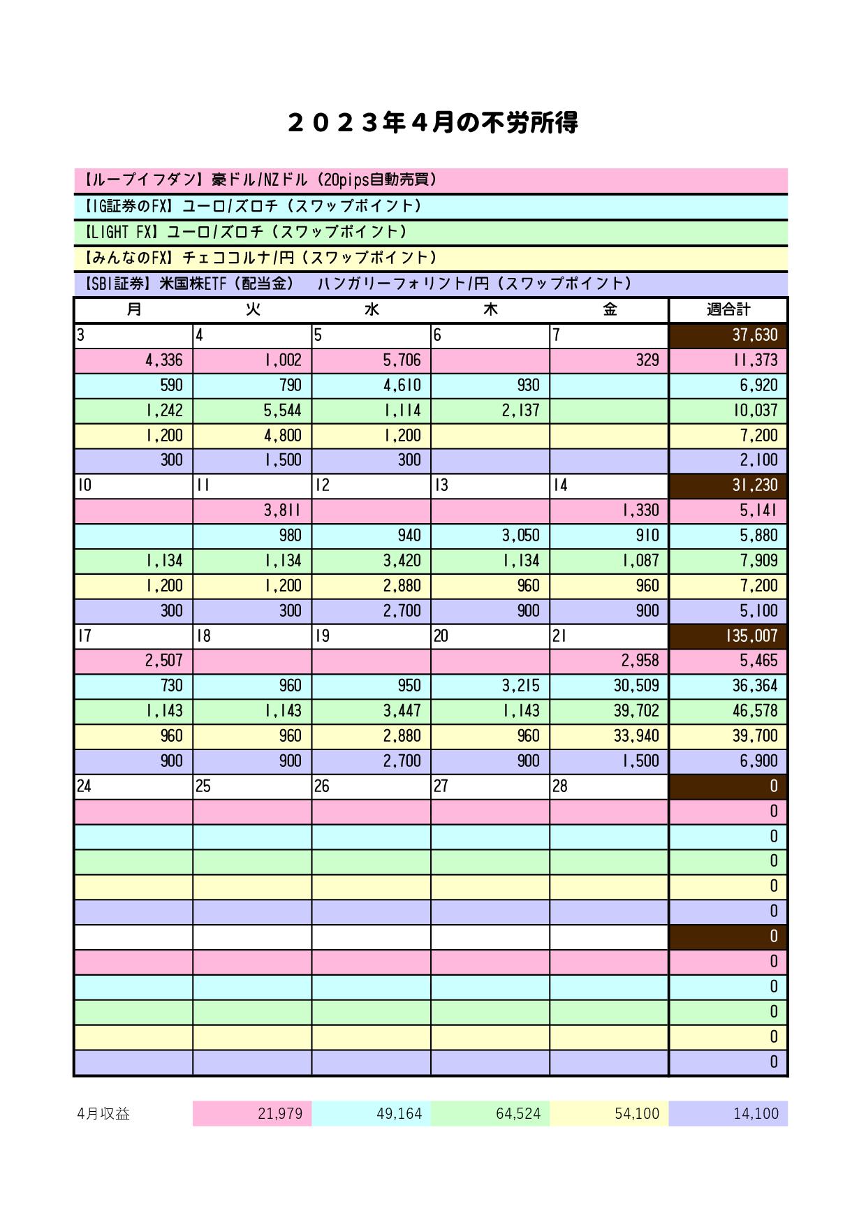4/17〜4/22までの成績はプラス135,007円でした。 |
