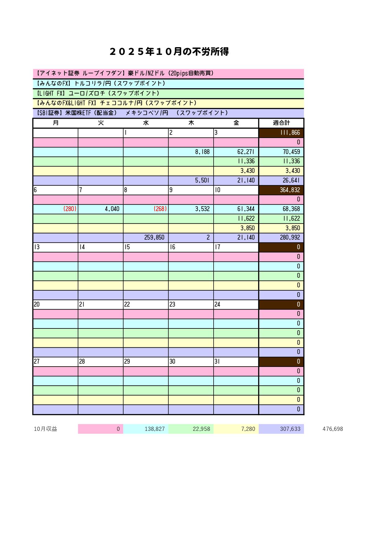 10/6~10/11までの成績は、プラス364,832円でした。 |