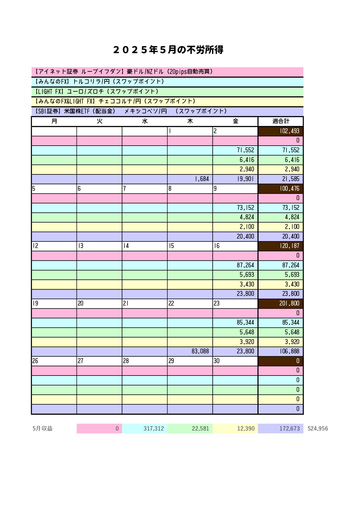 5/19~5/24までの成績は、プラス201,800円でした。 |