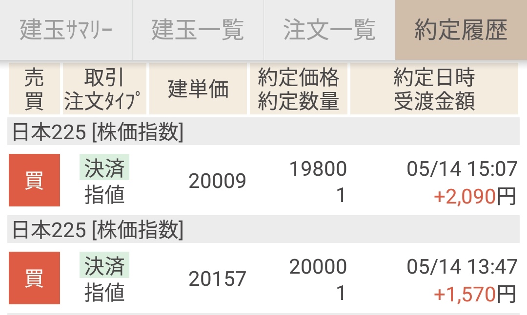 後場の大幅下落で2本の決済ヒット